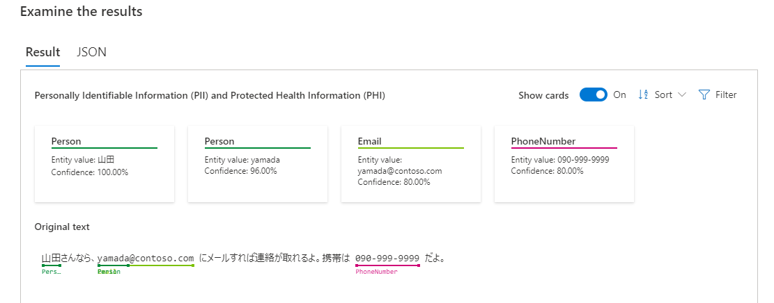 Pll は Personally Identifiable Information の略で " 個人を特定できる情報"、それを検出するサービスです。日本語も対応しており、非構造化テキストに含まれる機密情報を特定、分類、編集することができます。