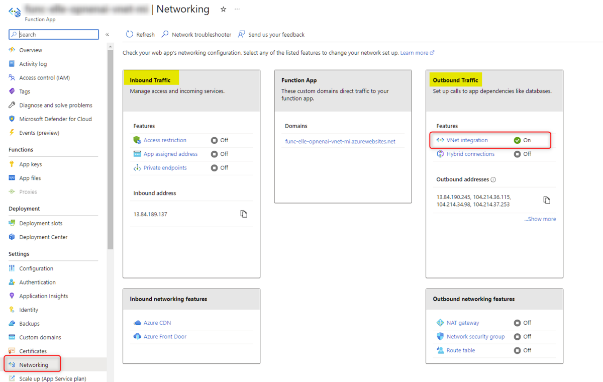 - outbound の設定であり、Function App への inbound ではない点には注意。inbound は別の設定になる。